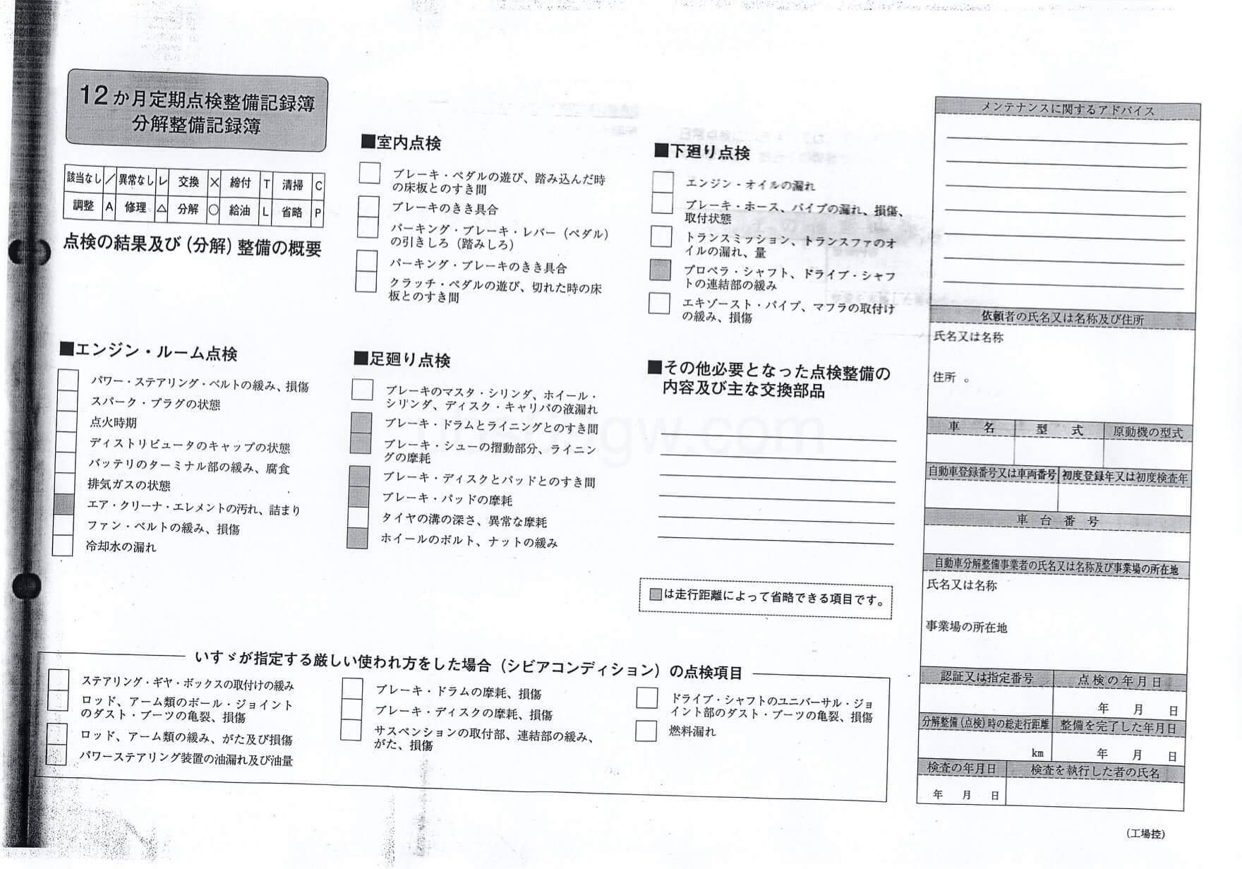 1年点検、12ヶ月点検とは、道路運送車両法 第48条に「定期点検整備」として定められています。