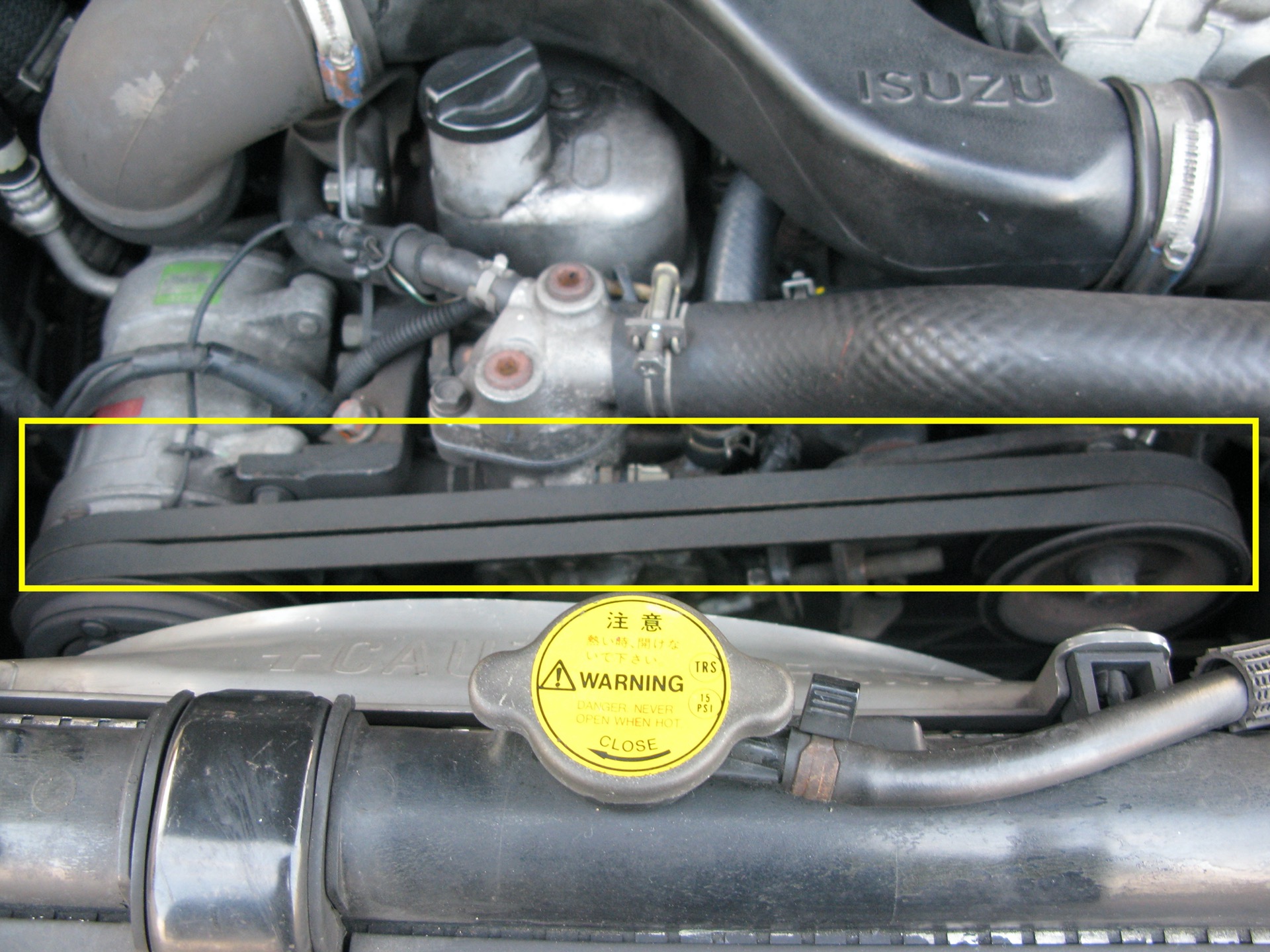 パワステ・エアコン・オルタネーターなどを動かす重要なベルトです。ベルトの張り、亀裂などを確認します。ベルトのひび割れを防ぐために、定期的に潤滑もしてあげるといいでしょう。