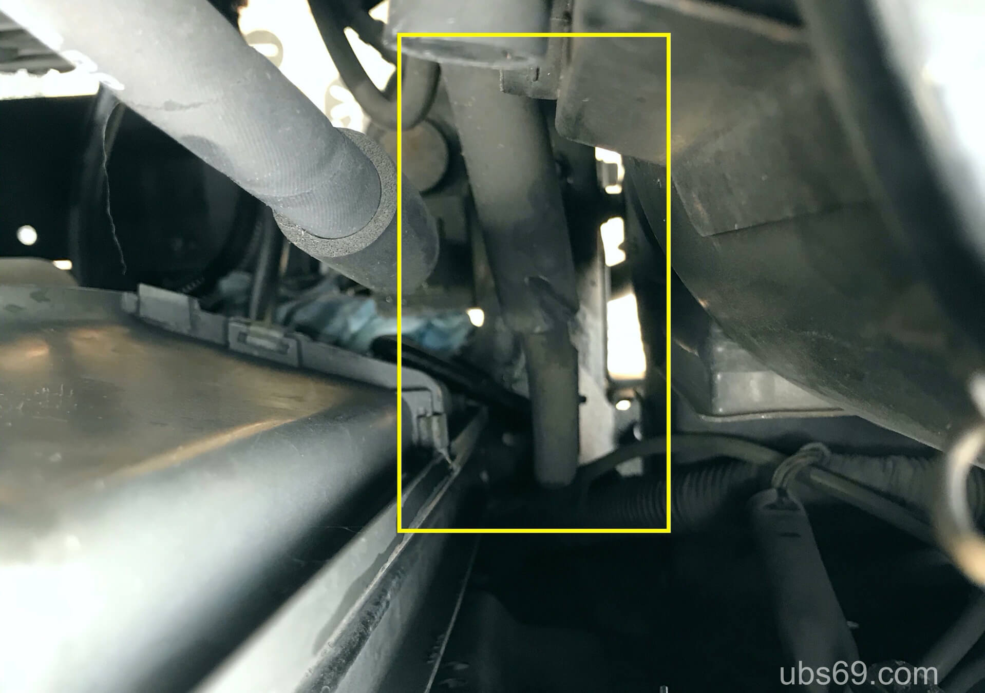 リザーバータンクに挿さっているところと、画像のパイプのところを抜きます。パイプ部分は真上に引き抜くので力が掛けやすく、ホースを抜くのは簡単でした。