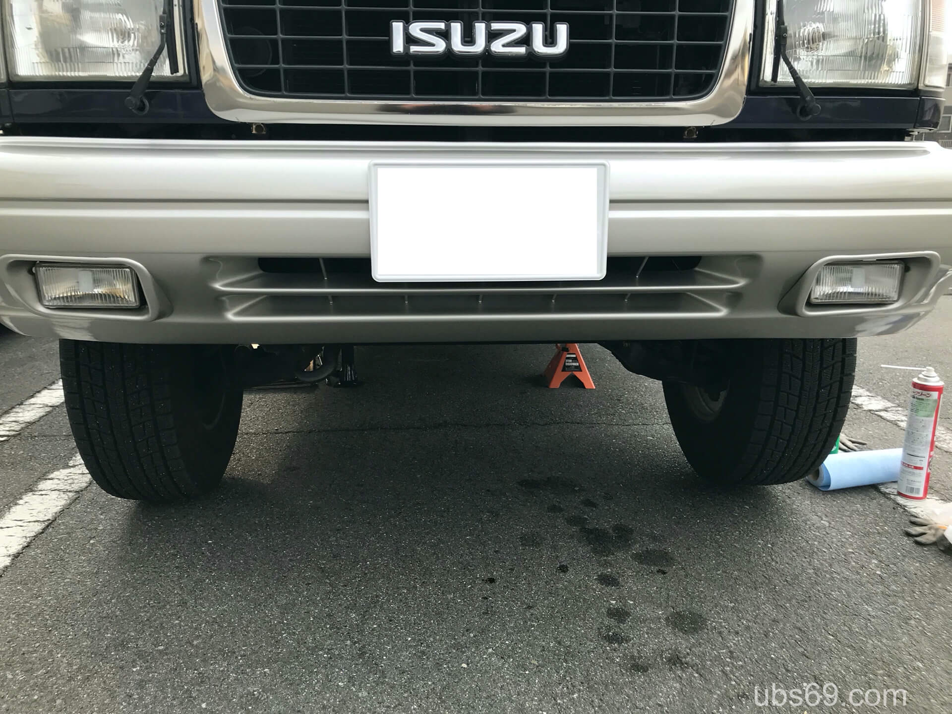両輪をジャッキアップしておく